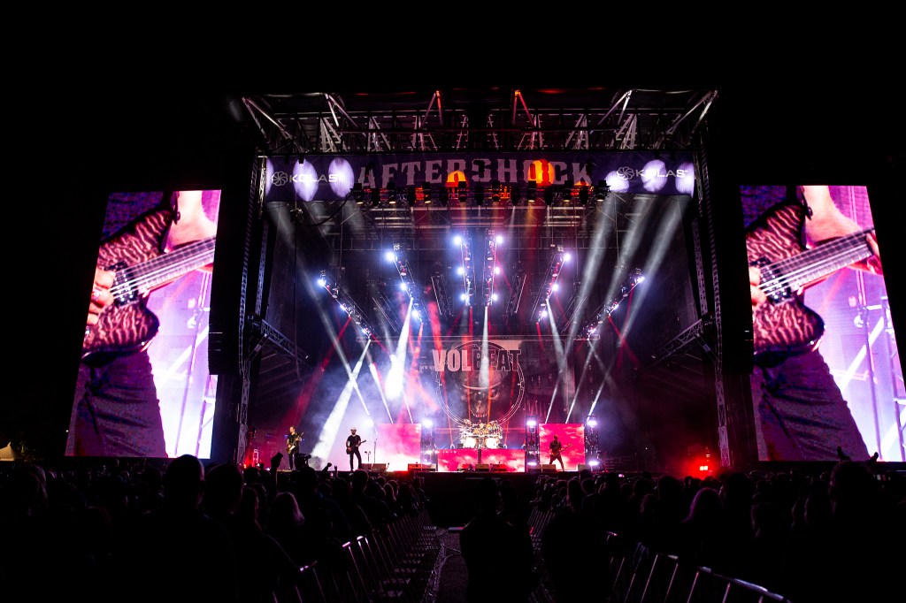 Production Designer Niller Bjerregaard turned to a large inventory of GLP Fixtures, dominated by the JDC1 Hybrid Strobe and impression X4 Bar 20 batten, when Danish rock band Volbeat played the recent Aftershock Festival in Sacramento, California.